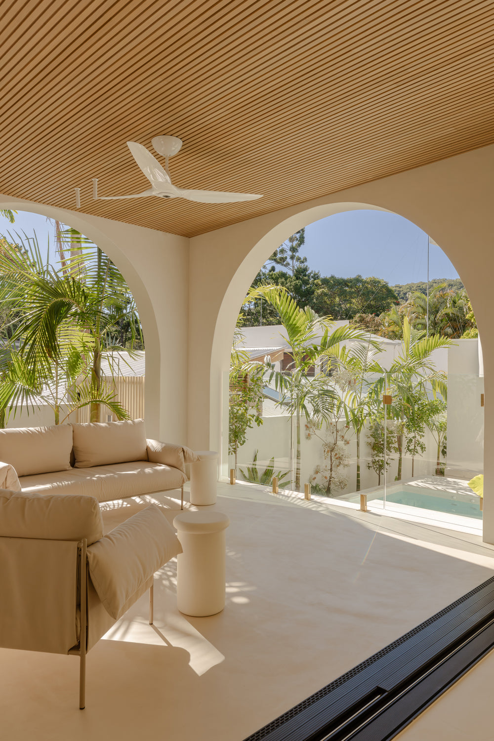 Cemher microcement is engineered as a complete system waterproof in every layer, making it suitable for exterior floors and walls exposed to full weather conditions. Designed to prevent water ingress and visual rising damp from slabs, the system performs confidently in rain-exposed environments without reliance on surface sealers alone. UV resistant and slip rated to P4, Cemher is ideal for pool surrounds, external patios, facades, stairs and benchtops. The seamless, natural finish creates a continuous flow between interior and exterior spaces, offering a refined alternative to segmented, artificial surface finishes.